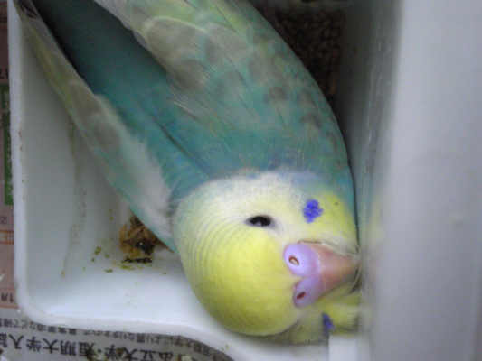 我が家のインコも本気で眠る時はケージ下の右角です。