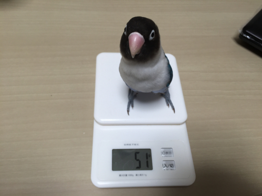 ペケは生後一ヶ月でお迎えした当初は挿し餌前40〜43g挿し餌後46〜50g、生後一年で平均体重48gです