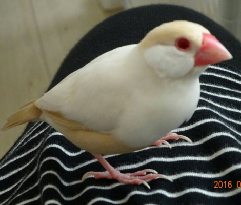 日時: 2016年8月3日 場所:大阪府八尾市 鳥の種類:クリーム文鳥 名前:シュガー 色:白とベージュ 特徴:生後7ヶ月幼鳥 届先: 投稿区分(本人or代理):本人 その他情報: