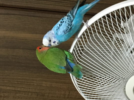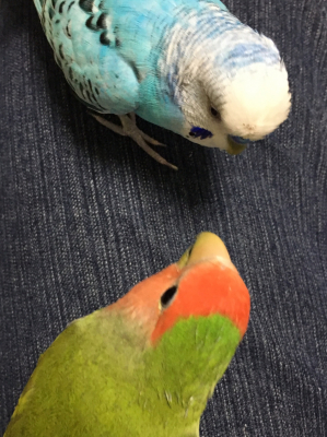 コザクラとセキセイなど異色の鳥さんが仲良くしてくれるとちょっと嬉しい♪