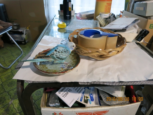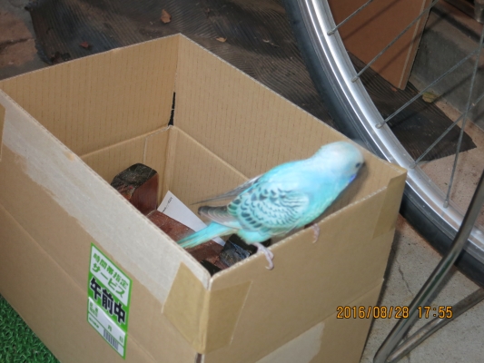 (顔が白で胴が青淡い色)若鳥っぽい、手にのってきます。