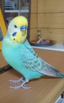 色:水色 頭は黄色 両頬に青い模様あり