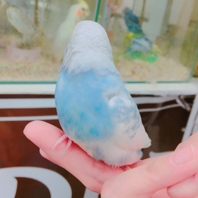 そうなんだぁ…と少ししょんぼりしてたところ、たまたま目に入ったムーちゃんの晴天のような青空カラーに一目惚れして、その日は一旦考えようと帰宅したものの忘れられずに、すぐショップに電話をして 今から迎えに行くので飼い主さん決まりましたの張り紙しておいてください!と頼んで迎えたのが 経緯でした。