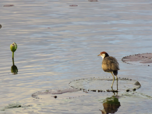 そのときのように、長い大きな足でひょいひょいと蓮の葉を渡っていました。