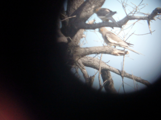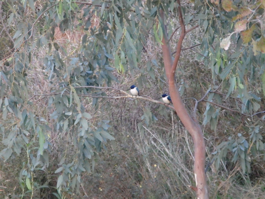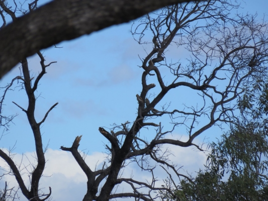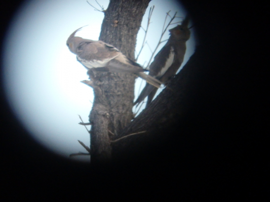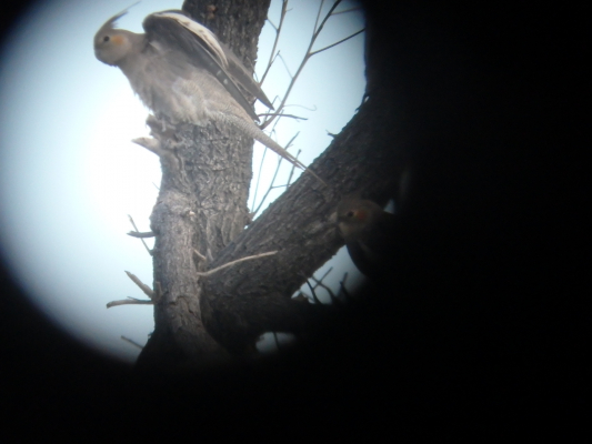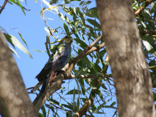 セキセイは見れませんでしたが、サメクサインコを一羽、大きなユーカリの茂った葉の間に見ることができました。
