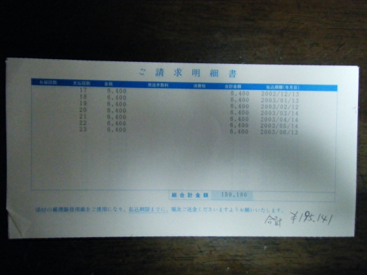 PS.懐かしいなあ?アルバムの請求書が出てきました。