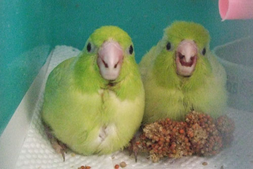ついでに画像を。白いのがブルーパステル♀雛ですが、