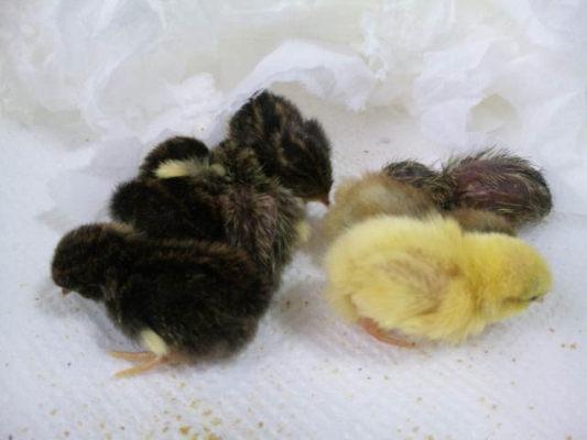 チャボのヒヨコって 姫ウズラのヒヨコの倍くらい?