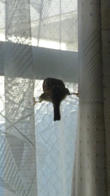 これはこれですごいですよ!!これってカーテンに足が絡まったということですか・・・?