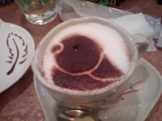 飲み物にインココアとぶんちょここあがありますが、鳥さんの絵を描いてくれます。