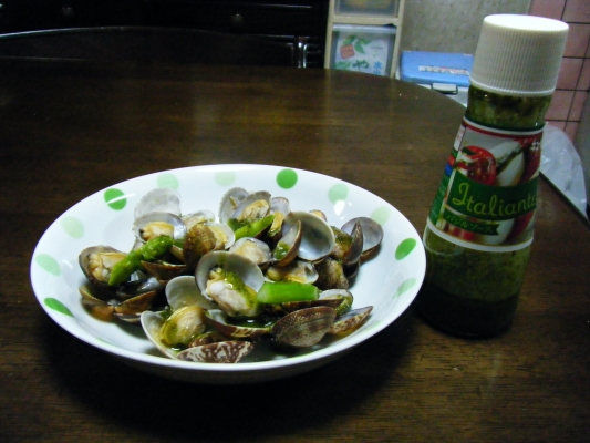 ただのアサリバターにキューピーの「イタリアンテ」というバジルソースを加えると・・・外食のイタリアンっぽい味になりますよ!!