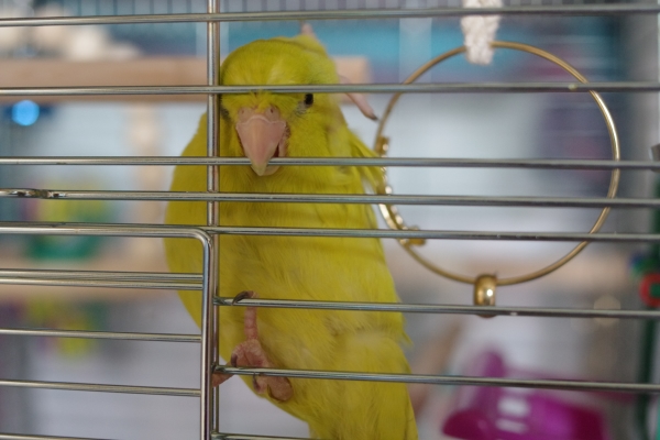 ケージ暮らしになった当初からケージに貼りついて