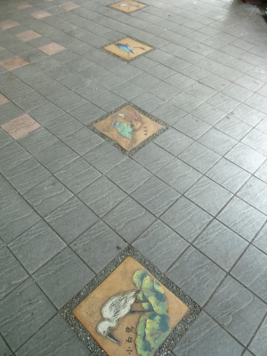 鳥街の舗道には、鳥のタイルがはめこまれているんですよー。