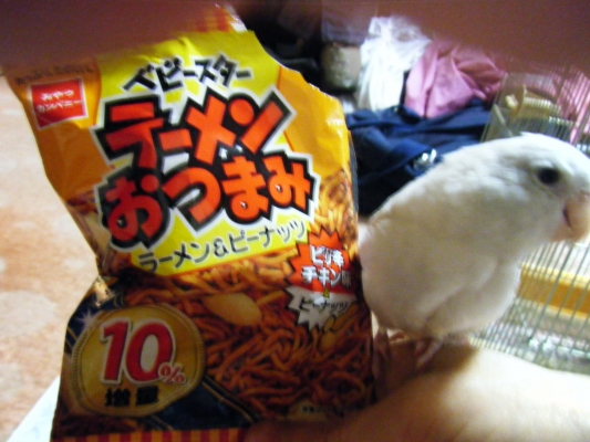 ぺこちゃんタワーです(一箱一体です) ベビースターラーメンのまわしもの 何か食べてるとすぐに飛んで来ます