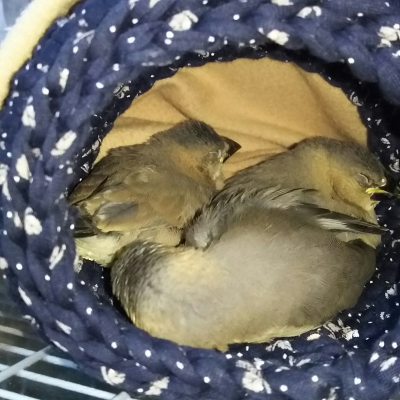 引き継ぎの後、シナモン♀は『育児から解放された』と言うぐらい雛には無関心。近付けると逃げる…淡白な母鳥でした。