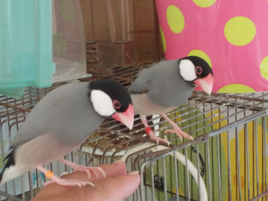 ヨーロッパ十姉妹1羽、桜文鳥2羽います。