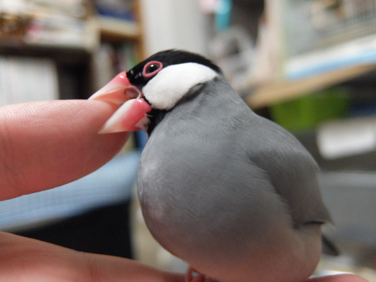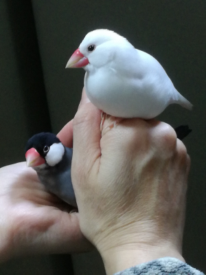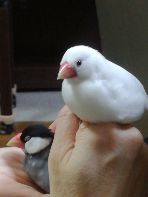 鳥飼いも周りで少く、まして文鳥を飼っている人も少ないので『文鳥って?』と聞かれることもあります。その度に『雀より少し大きめ、真っ白で目の周り、くちばしが赤いの見たことない?』と言うと『あ〜ぁ』とわかってもらえる程度。