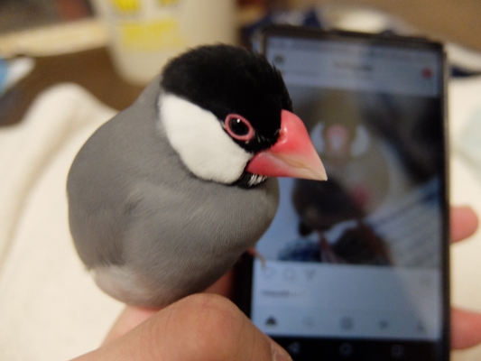 チビ文鳥はかみかみよりほくろ等の点をつつくことが多くなりました。よくスマホ画面の点をつついています。