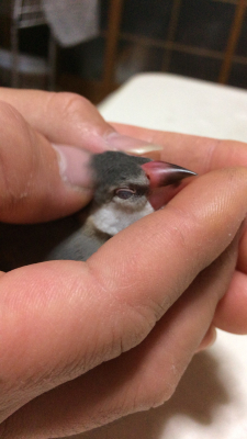 チビ文鳥は4週目にひとり餌になりました。挿し餌を減らそうかなぁと思っていたら、一口で拒否されました。そ嚢は餌でぱんぱん。その後も挿し餌の準備をしましたが再び一口で拒否されるので止めました。3回から一気に終了もありなんだと思いました。
