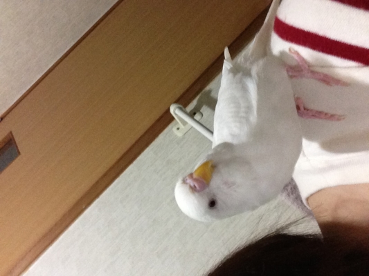 特徴:目はよく見ると赤色、鼻・足は薄ピンク、くちばしは薄いオレンジ色