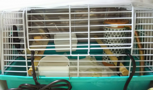今年の冬は、夜はプラケースに、日中は鳥かごにしようと思います。