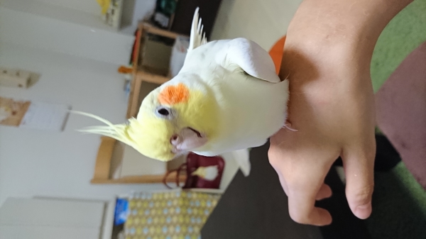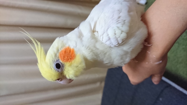 特徴:自分の名前を呼ぶ。臆病で手よりも肩や頭に乗るのが好き。換羽期ですので、もしかしたら写真よりも羽根が少ない可能性あり。