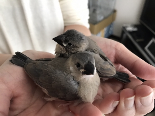 現在いる十姉妹たちは一歳になったタイミングでペットショップから連れて来てるのでもちろん懐くまでには時間が多少かかりました。手から野菜を食べてくれますが、いまも手乗りではありません。桜文鳥ちゃん達は人懐こく、人間との距離もあまりないみたいです。同じフィンチ系ですが、違いがあり面白いですね。