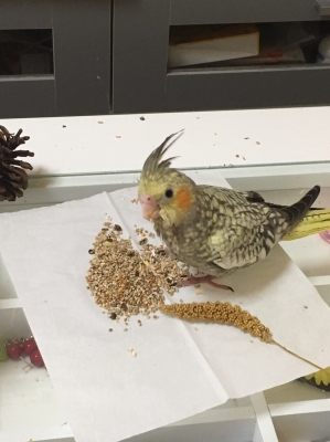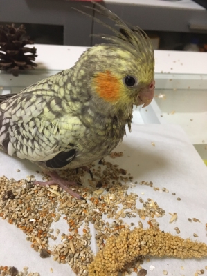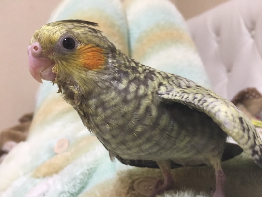 色:黄色と白と黒のまだら模様、ほっぺたオレンジ