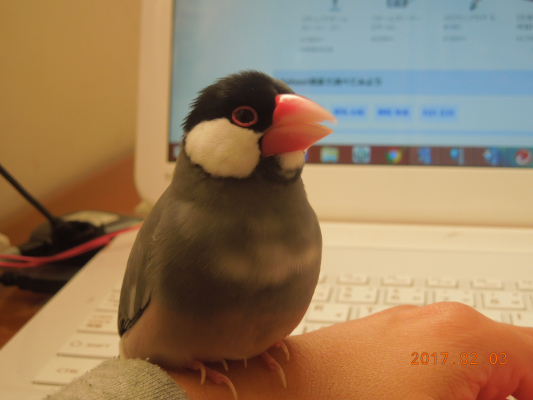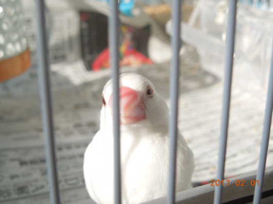 生後二か月白文鳥目左右の大きさについて