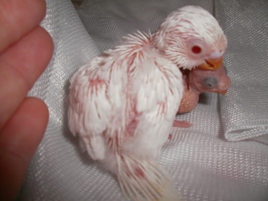 おかげさまで ヒナは とてもたくましく!成長しております。全身も羽毛に覆われ始め、保温の面で 本当に 安堵しているところです。目も開きました。ところで、やはり赤目ではないので(黒目なので)、しろちゃん夫婦の子では(遺伝的には)ないようです。おそらく、「ぼー」&「足長くん」の子です。