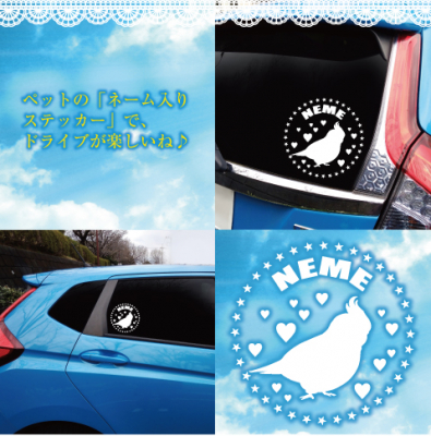 鳥さんのお名前が入れられる車用「ネーム ステッカー」10種類が発売開始になりましたヾ(*´∀`*)ノ