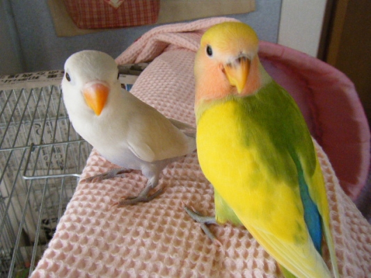 同じケージに入れられており、こんな鳥がこの世にいたのかと思うほど可愛くて、しばらく見とれてしまいました。
