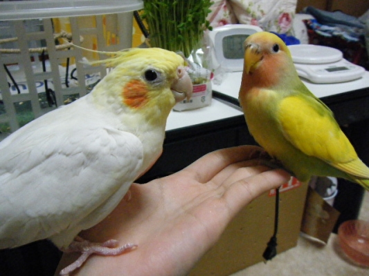 それから2羽飼いでも、大きくなってから飼った場合でも、飼い主さんの根気と、その仔の性格次第では手乗りにすること可能です。(しつけトピのきいママさん参照)