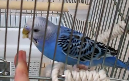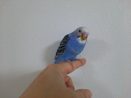 特徴:自分の名前ほかしゃべります。ひとりで練習していることも多いです。羽切っていますが、短距離はよく飛びます。