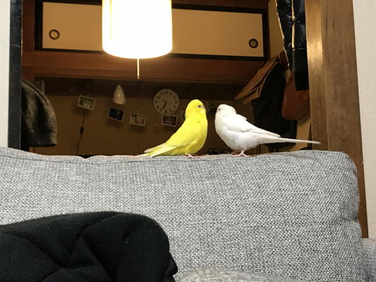 こんばんは^_^ うちのインコが来て一ヶ月程。癒され、笑わしてもらってます( ´ ▽ ` )