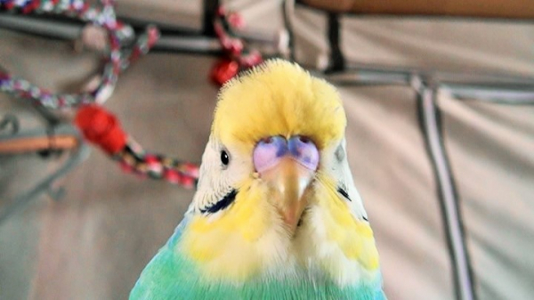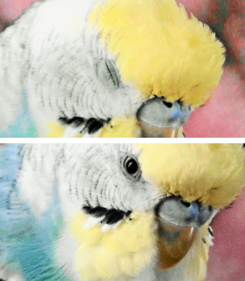 セキセイのドアップもなかなか面白い 目の表情が、深い気がする セキセイなのに、やけに哀愁ただよう