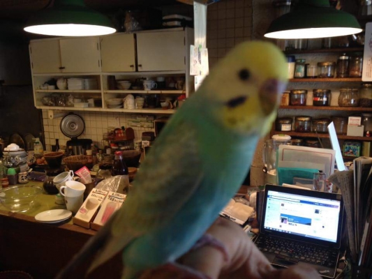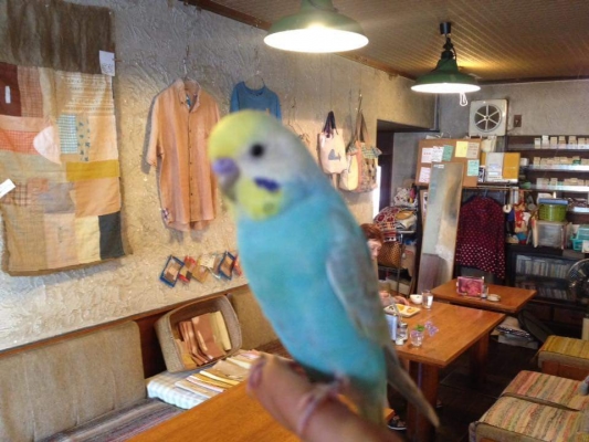 ★セキセイインコ パステルレインボー ★とても人に慣れています。 ★たぶんオス H29年7月4日朝、名古屋市東区で出勤途中の男性の肩に止まり徳川の喫茶店「ぱんとまいむ」さんで大切に保護されています。代理投稿で許可頂いていますので、お心当たりのある方は同店までご連絡下さい。