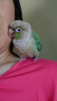 私の肩にとまることが大好きで、そのポジションを取り合うほど、毎日争ってくれます。それほど、ベタ慣れです(笑)