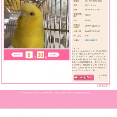 2018年度のインコ/オウムカレンダーのエントリーあと141枠もありますよー😃✨