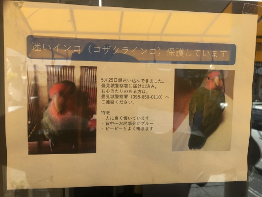 その他情報:惣菜屋にポスターが貼り出してありました。豊見城警察署で保護されているようです。飼い主さんが1日も早く気づいてお迎えに行きますように。