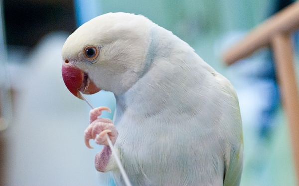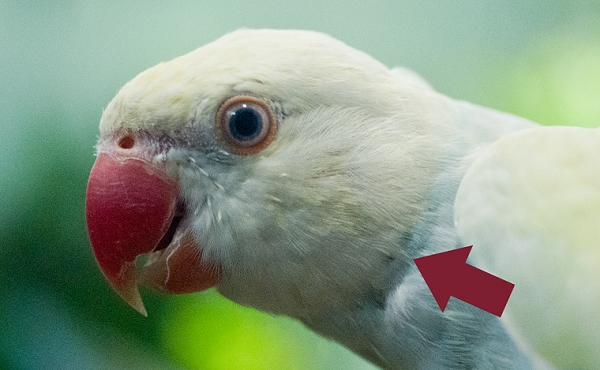 特徴:ワカケの特徴である首輪の羽が生え始めたばかり。