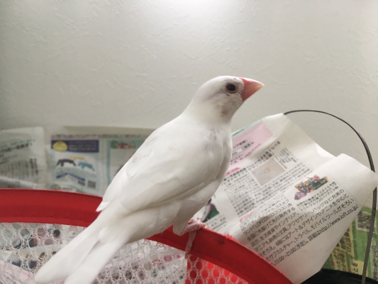 特徴:雛換羽の最後(生後3ヶ月)で頬に筆毛あり。手乗りではあるが、やや臆病。キャベツ、小松菜、豆苗で寄ってきます。