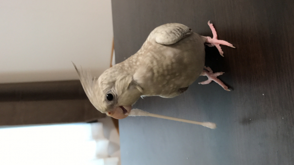 オカメインコ シナモンパールパイド(まだ性別不明)3ヶ月半のまもると暮らしています(*´ω`*)