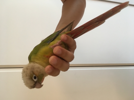 保護した日時:2017年7月29日 保護した場所:千葉県習志野市 鳥の種類:ホオミドリアカオウロコインコ 色:頭は白 顔と背中は緑 尾は赤 腹は黄に赤 特徴:言葉はほとんど喋りません。手乗りで人懐こいです。 届先:習志野警察署 投稿区分(本人or代理): その他情報:自宅で保護しています