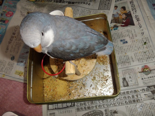 まだ齧っているところを目撃していません。また羽繕いも上手ではないようで^^