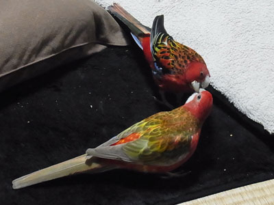 赤い粉のようなものが見えたので、何か色を鮮やかにするための赤い食べ物を、特別に与えてらっしゃるのかと思いました…。