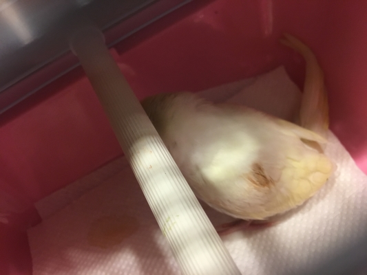 反対側の羽根からは出血、うんちがピンクになっていたため