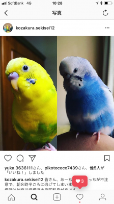 色:ブルーがちっち、イエローハルクインがあーちゃん