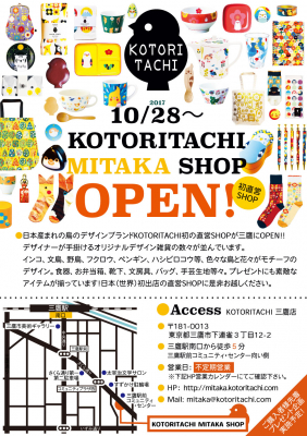 ◆◆鳥のデザインブランドKOTORITACHI三鷹店OPEN!◆◆