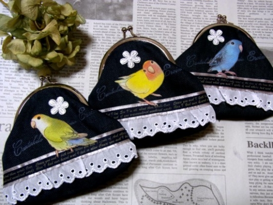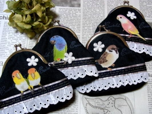イラスト工房Emiさんのデニムのがま口ポーチと着物ポーチを、たくさん掲載しました!